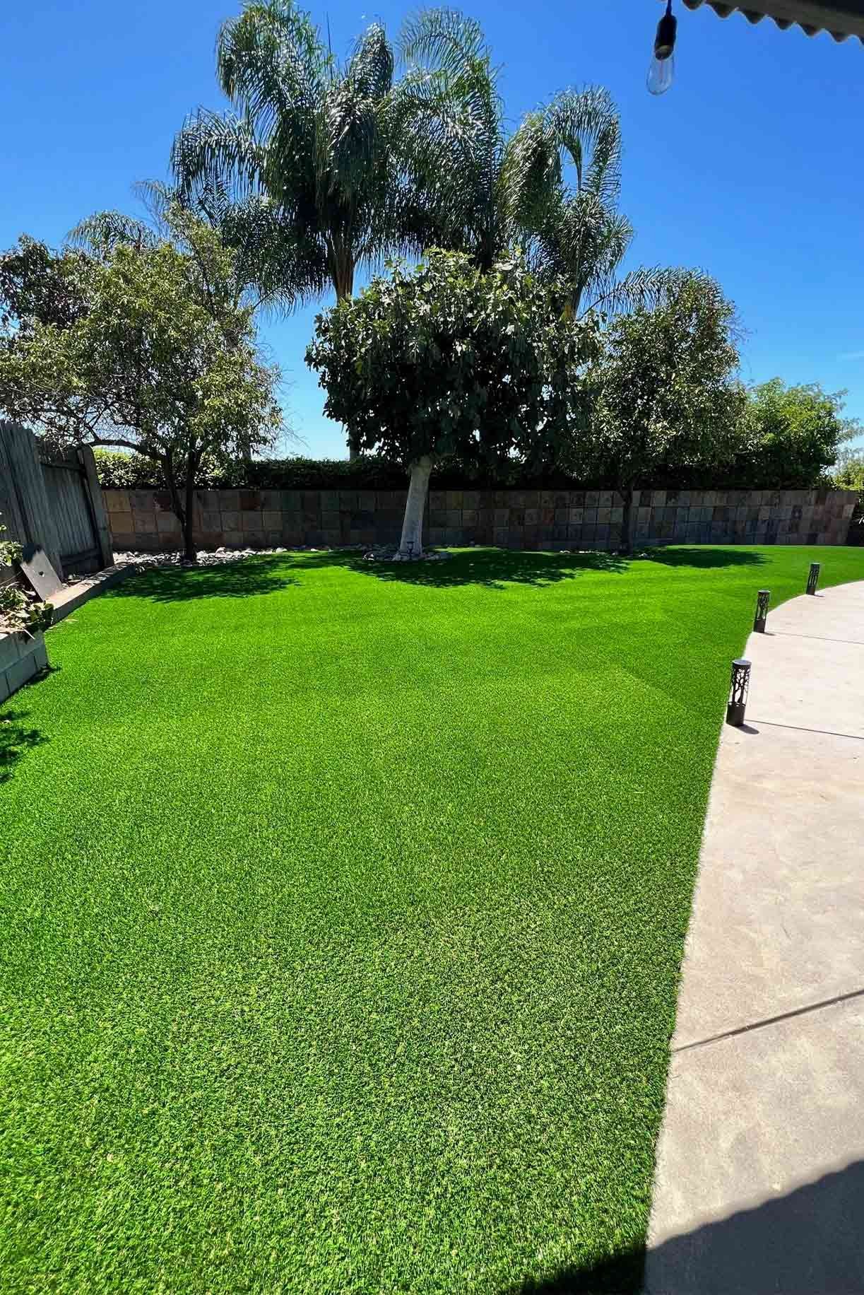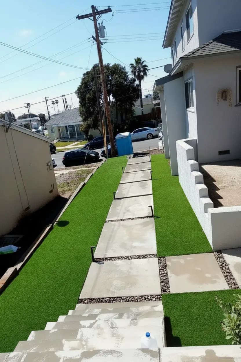 Full Backyard Remodel with Grey Concrete, Coronado Turf, 2x2 Steps & Raised Planter