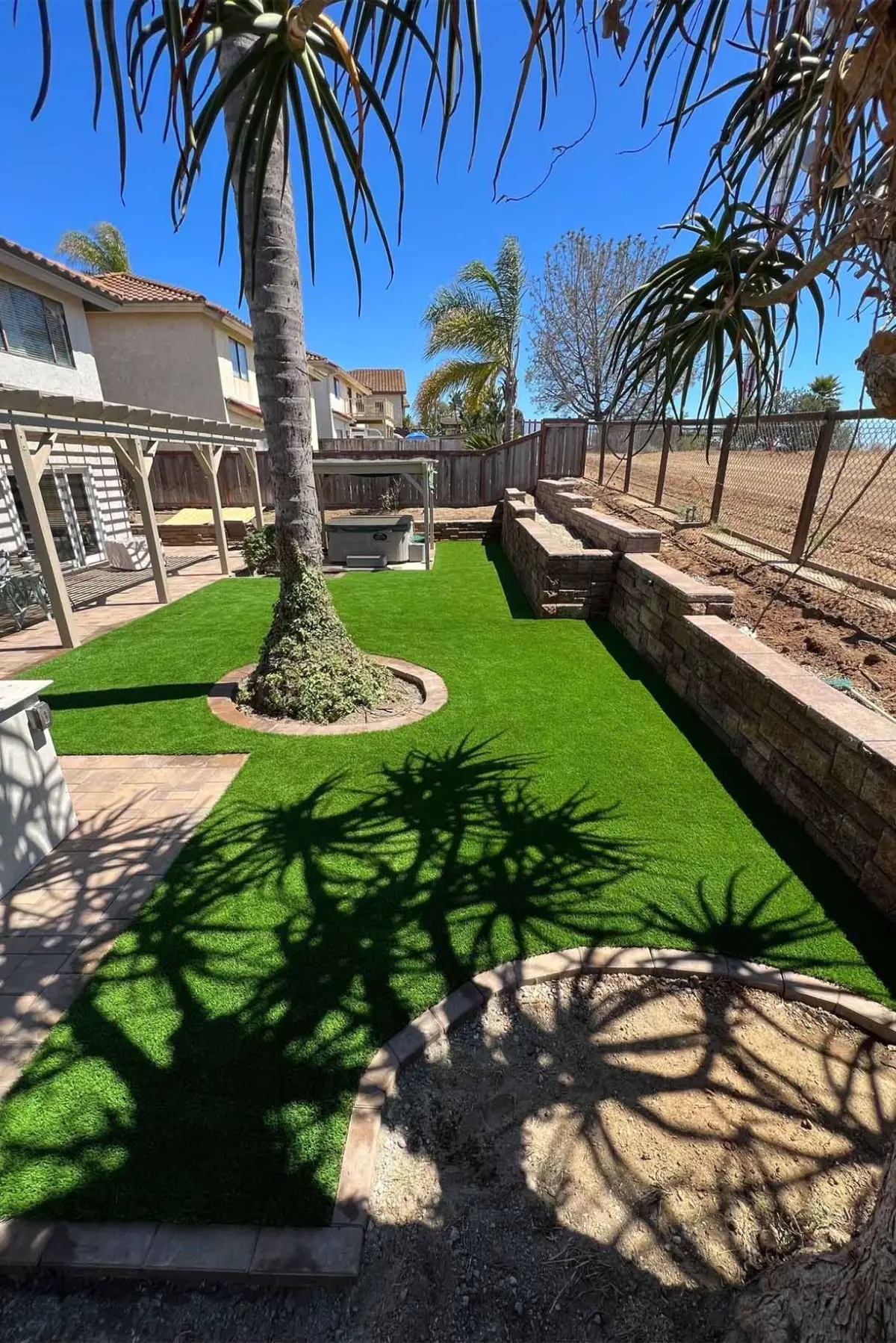 Tiered Backyard Remodel with Retaining Walls, Turf, Putting Green & Drainage