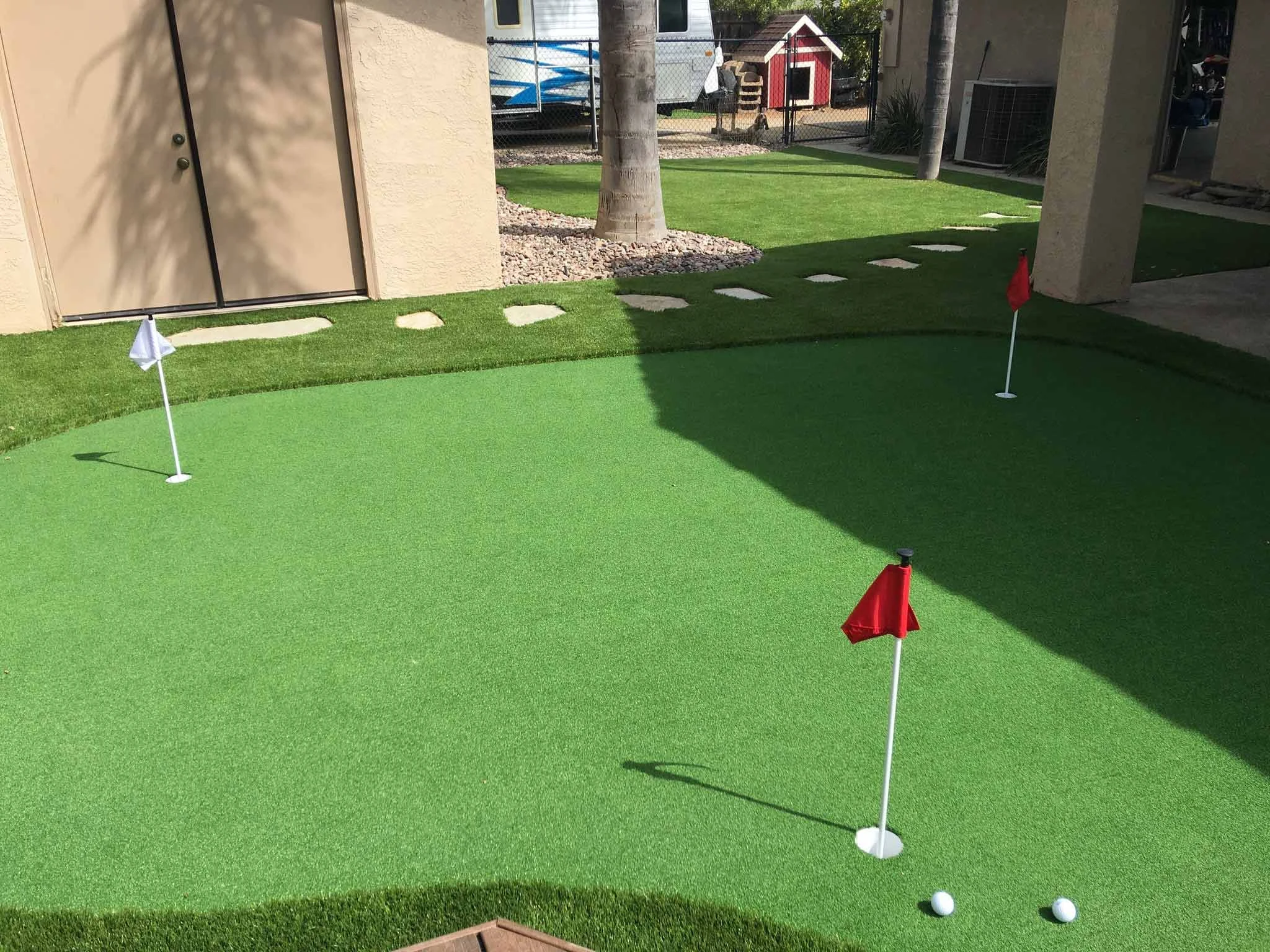 Backyard Putting Green & Premium Turf with Flagstone Pathway